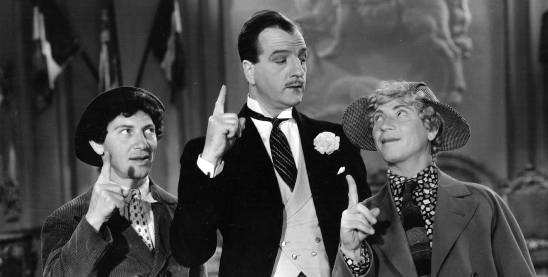 Here’s something I probably started back then, starring two of my favorite characters I semi-created; Caecelia and Mootella. Read their previous stories HERE and HERE. This is very much an homage to the scene in Duck Soup where Chicolini (Chico) and Pinky (Harpo) meet with Trentino to report on their mission to spy on Firefly (Groucho).